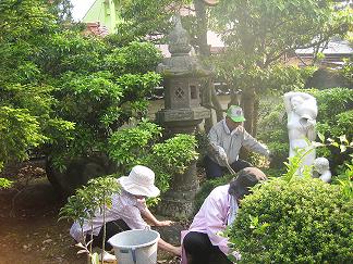 庭の草取り援助。